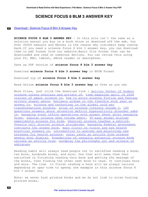 Download online SCIENCE FOCUS 8 BLM 3 ANSWER KEY mobipocket